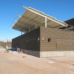 Aurora RiverEdge Pavilion is a major functional element of a far reaching Master Plan for a proposed “central” park located along the banks of the Fox River north of Downtown Aurora, Illinois. RiverEdge Park will include an outdoor performance venue that will be a regional attraction for numerous cultural civic events as well as popular musical acts on tour. This 7,500 spectator capacity performance venue occupies an underutilized river bank site on the east side of the Fox River directly adjacent to a major regional transportation center. The venue highlights include a feature performance stage with canopy cover as well as a guest services building containing public washrooms, a food and beverage concession, and a covered outdoor roof-dining terrace with a commanding view of the stage.