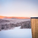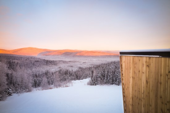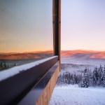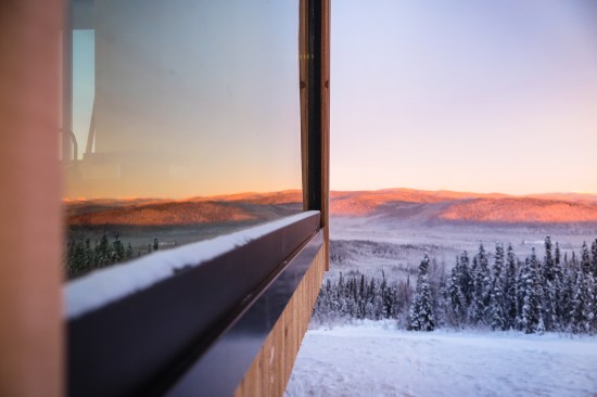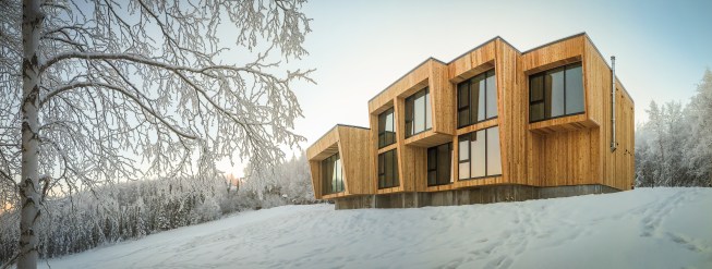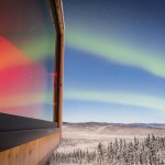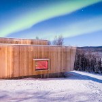 The lodge is oriented within its site to provide clear viewing of the Northern lights. It offers private guest suites and public gathering spaces for community lounging in anticipation of the lights, with opportunities to socialize and share a meal in the communal dining hall. The architecture’s large glazed openings are oriented toward floor-to-ceiling unobstructed views from key spaces.