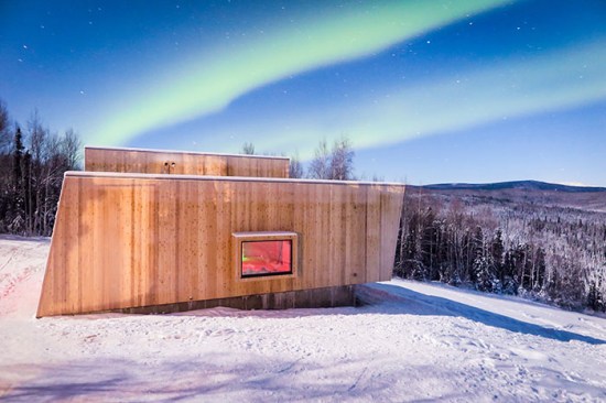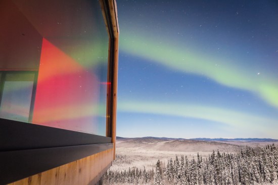 The Aurora Villa is a boutique hotel located outside of Fairbanks, Alaska, on a remote site known internationally as one of the ideal locations in the world to view the aurora borealis. The resort was specifically designed as a luxury getaway for visitors to catch a rare glimpse of this natural phenomenon from the comfort of the lodge interiors. Ephemeral and enchanting, the Northern Lights have fascinated and haunted people with their spectral presence for millennia. Over the past decade there has been a surge in international tourism to the remote and icy locales in Alaska where the aurora borealis can best be viewed and photographed.