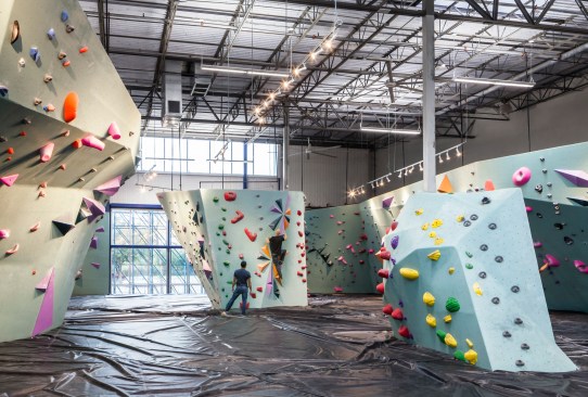 The ABP is an indoor bouldering gym at 979 Springdale in Austin TX. The space includes roughly 45,000 sf of climbing, fitness and community gathering space. The project was design by Dylan Johnson of djaarrchitects.com and the ABP team. Interiors by Lilian Steckel Interior Design LILIANNESTECKEL.COM. Climbing Walls engineered by Zane Kanyer, Swenson Say Faget. The project was developed and built by the building owner.