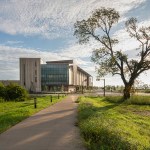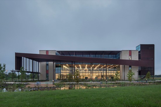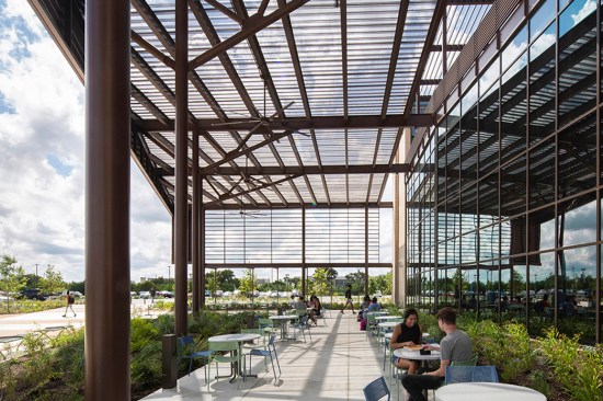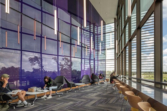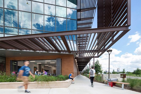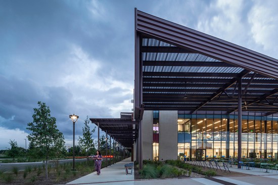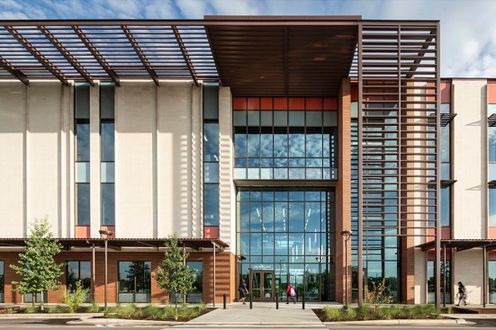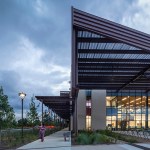 Phase One, referred to as a ‘campus in a box,’ transforms ranchland into an urban campus at the epicenter of an emerging transit-oriented development—setting the tone for the campus’ continuing development. The three-story academic building is designed to easily transform as the campus expands and new programs come on-line. Adjacent to a light-rail station, highway and hike-bike trails, all modes of transportation are supported with a focus on a safe, pedestrian friendly campus. Building materials, including limestone masonry and rusted metal reinforce how the DNA of a city rooted in ranching and the railroad can be manifest in modern architectural character.