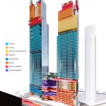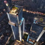 Standing above a layer of high-rise buildings, Thamrin Nine Towers 1 and 2 are significant additions to the city skyline, with Tower 1 ranking as Jakarta’s first supertall at 333 meters tall. The buildings step up in height from the low-level retail podium that connects the two towers, enhancing the urban environment of the city with four illuminated observation decks that cantilever off the glass structures.