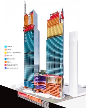 Thamrin Nine’s paired towers represent a gateway into the historic Jakarta neighborhood, integrating public and private spaces to create vertical cities within themselves.