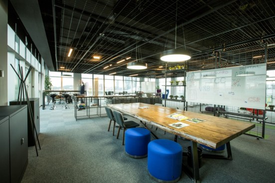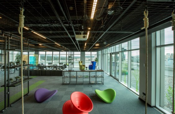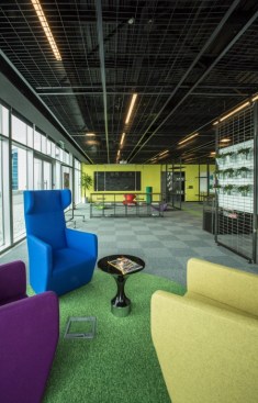 The “Digital Garage” for the penthouse of the Headquarters of AvivaSA by Istanbul based TeamFores Architecture, has been shaped with a dynamic and creative work concept combined with an industrial style.