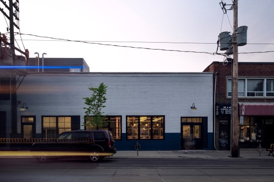 The single-story brick-and-concrete-masonry-unit building at 1042 Queen St. E in Toronto’s Leslieville neighborhood has always been associated with food. Built in 1949 as an A&P grocery store, it has since served as a vegetable wholesaler and even an indoor bean sprout farm. Its newest life, after an extensive renovation designed by local firm LAMAS with executive architect MGBA, is as a trendy farm-to-table restaurant and brewery.