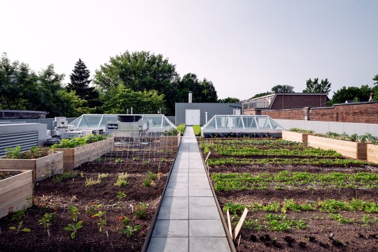 That steel was necessary to support the added weight of an urban rooftop farm that provides everything from salad greens for the kitchen to pungent herbs for the beer. “To convert it into something that would support a green roof was a lot of gymnastics,” Macgillivray says.