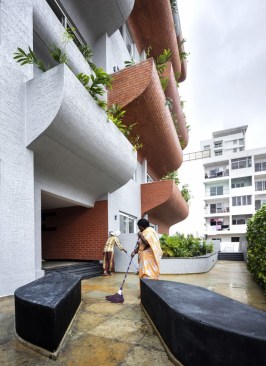 The planting pattern is tropical and native to the local region. Each balcony is provided with a tree engaging the users with their greens. The extended cantilevered spaces in the form of balconies and planter box give the user the opportunity to grow greens along the entire length. Expectantly, in the years to come, one would find more greens from the building than one would expect from an otherwise concrete surface.
