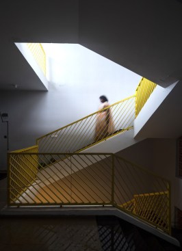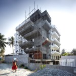 Located in the heart of one of the busiest neighbourhoods in Bangalore, Vanam is a mid-size housing project with 20 living units stacked across 5 levels. Every unit is outward-facing, with openings planned to integrate ample light and cross- ventilation. The central core is well lit with skylights and louvres at the terrace level assisting in stack ventilation and making all the extents comfortable and less dependent on mechanical ventilation.