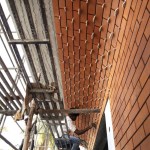 The overall material palette interweaves with the greens from the balconies and planters. It is planned to highlight the double-height corner volumes and scale down the visual vocabulary. 12mm thick brick cladding along with exposed grey textures formed the prime façade materials. The alternate deck projections and materiality of the façade is also enhanced by the sun movement and the quality of light and shadow. The common areas are further held together by natural stone flooring and terracotta jalis for the skylight areas.