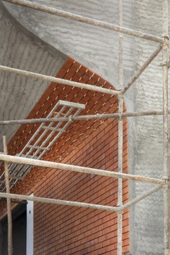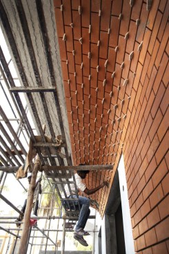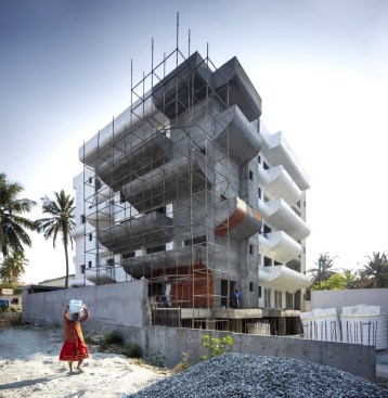 The formwork for the balconies was planned in a prototype of 4 feet width, 6 feet height. With several mock-ups done in GI to test the form, the final shuttering modules were done in MS. While the ideal methodology would have been to pre-cast the balconies, due to limited financial resources manual labour was involved and all the balconies were individually casted with the available number of modules and time frame. The planter boxes also followed the form and function of the balcony with integrated sunk to add more horizontal green spaces at each level.
