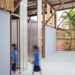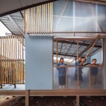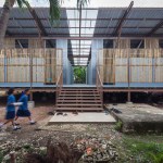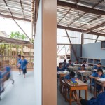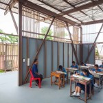The walls of the building are composed of the modular system of wood cement boards which are widely available and handy. These wood cement boards can be used in constructing the walls as well as the shelves; therefore, the number of the construction remainders are subsequently decreased. However, the most significant concept is the developable design for the real users; students and teachers. For years to come, the users can adjust the functions according to their own demand; for instance, the classrooms can be integrated by the diminution of the partitions between 2 floors or the restoration of the building’s surface by using local material such as bamboo in order to facilitate the process of quality control; moreover, bamboo also has the flexibility which is suitable in case of earthquakes. Besides, the utilization of bamboo in the restoration of the building’s surface is facile for the calculation, transportation and construction.
