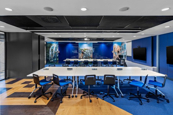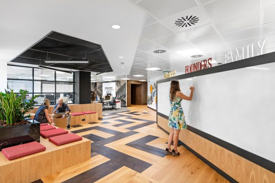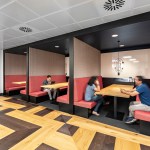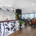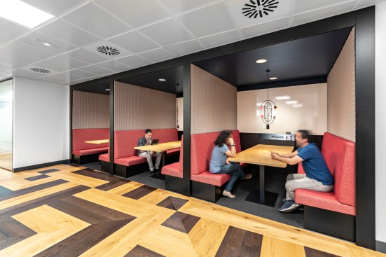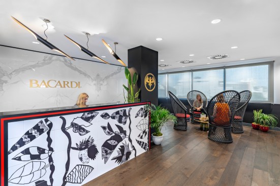 Seamlessly incorporating five distinctive brands into the single-floor workspace was challenging, but IA’s experience designing Bacardi’s London office and close work with client teams to craft the brand expression paved the way. Bacardi’s classic, signature artwork, adapted for bespoke solutions, is seen across tiles, fabrics, and wall coverings.
