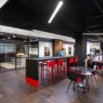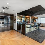 Each brand inspires a unique space. There is the Dewar’s Library, the Bacardi Bar, the Martini Espresso Bar Lounge, and the Grey Goose and Bombay Sapphire meeting rooms. For large groups, the Bacardi Bar can be merged with the Bombay Sapphire Room via a folding glass curtain wall. A variety of formal and informal meeting environments host groups of all sizes and accommodate work-style preferences. In one area, seat steps are an option for informal meetings or as an alternative workspace.