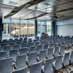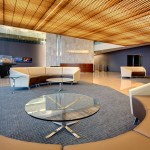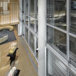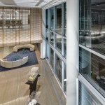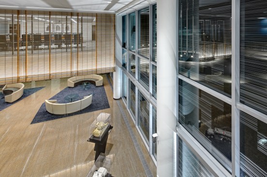 Transparency was a key factor in the design, as it is highly instrumental in the Client’s own identity and expressive of the environment they desire for their employees. The glass exterior allows for lucidity, while the frit pattern design on the glass adds a subtle detail to the very transparent facade.