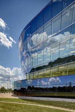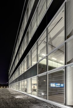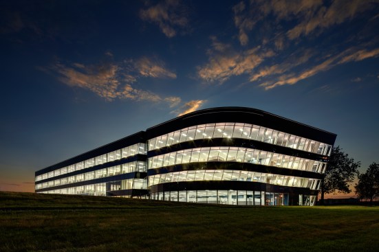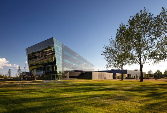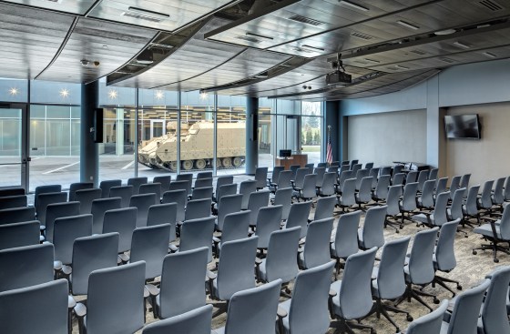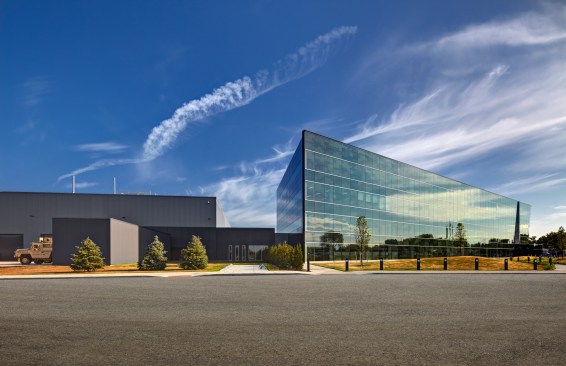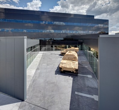 The building is designed as a very sleek, taut crystalline form, a complete contrast to the products engineered and designed within. This association emphasizes the nature of the armored products and their purpose. They are not just weapons of war but the protection for our young soldiers who place themselves in harm’s way. The armor that is engineered and built here saves lives.