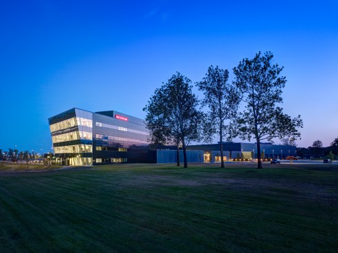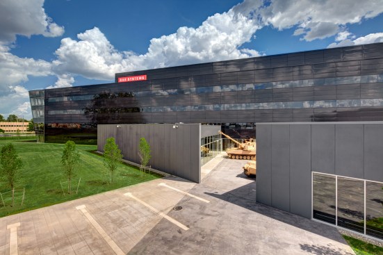 Repositioning one of the world’s largest global defense contractors onto an existing industrial site becomes a study of contrasts. A polished architectural shell harbors the robust armor products engineered and produced.