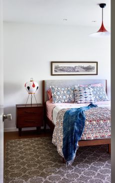 Connected to the main house by a covered walk, the guest casita holds two bedrooms, one bathroom and a small bar area. The simple design and period-appropriate decorative lighting fixtures make this a comfortable and private retreat for the owners’ children and their growing families.