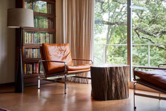 During the 1950s, architect Roland Roessner was teaching at the University of Texas and designing some of Austin’s most daring modern structures. One of his more memorable houses, the Balcones Residence, is perched above a long, sloping hillside and notable for its prominently cantilevered concrete balcony. Located along Balcones Drive, the property backs up to Camp Mabry, an 85-acre historic military installation established in 1892. New owners purchased the home from the original owners, and though previously unacquainted with the period, delved into all things mid-century modern. They hired Clayton & Little to assist with a deliberate and sensitive renovation of this Austin treasure.
