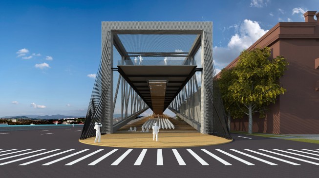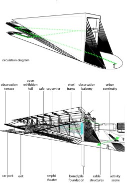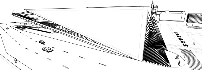 Baltic Way Memorial is situated on a connection site by a bridge in the city. Balancing Memorial, a cantilevered memorial near the square. The memorial is 150 meters long. It is only when visitors reach the end of the strcture that they suddenly experience the full length of the volume and the cantilever.The reason for this spectacular setting is the symbol of power. This cntilevered structure can not balance itself. If we hang with one cable from starting point, it will overturned .If we hang with two cables from starting point, it will overturned.If we hang with five cables from starting point, it will overturned.But If we hang with enough cables from starting point, it wont overturned.Every cable symblizes person. These cables can carry a huge load of come together.
