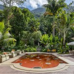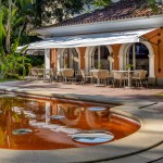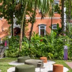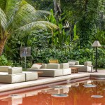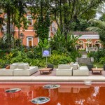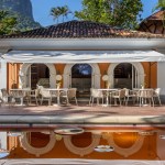 The space chosen by Gisele Taranto embraces the pool area next to a historic 19th century house listed by the Institute of National Historic and