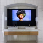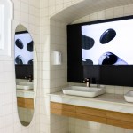 ◼ Bathrooms. In lieu of mirrors, NFTs from the Olhar 2022 exhibition are shown on TVs.