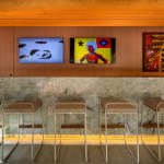 environment. TV sets in the bar and bathrooms display NFT artworks from the Olhar 2022 exhibition. The space has its own Spotify playlist.