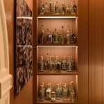 for the countertops calls to mind the bamboo grove, while the earthy color of the walls alludes to the architectural complex that houses Casacor Rio. Beautiful bottles with poetry inside, from Sandra Gasparian, can be seen on the left.