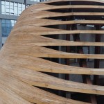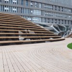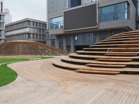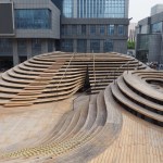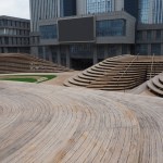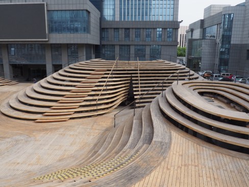 Bamboo Square, designed by Beijing-based architect Li Ji, is a one-of-a-kind structure. Made almost entirely of thin sheets of bamboo grown in China, the undulating lines and naturalness of the wooden material stand in stark contrast to the rigid steel-and-stone office buildings surrounding it. The architect chose bamboo specifically because it offers psychological relief from the monotony of China’s urban spaces. It’s a smart choice for a plaza where people can take a break from their busy work life and experience the peacefulness of nature, as well as see cultural performances and outdoor exhibitions of various kinds.