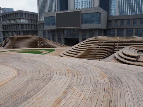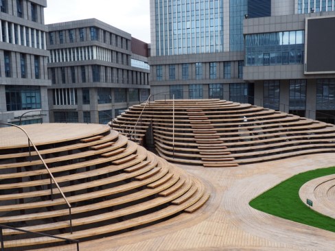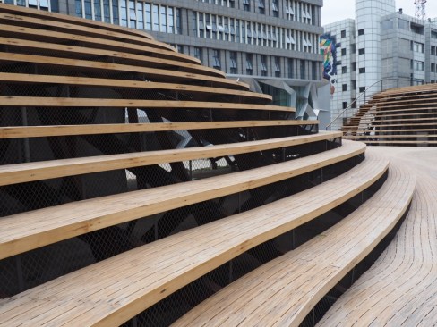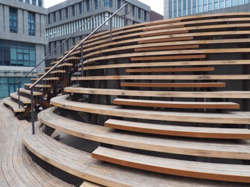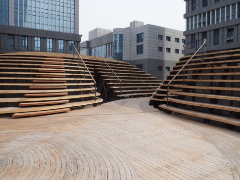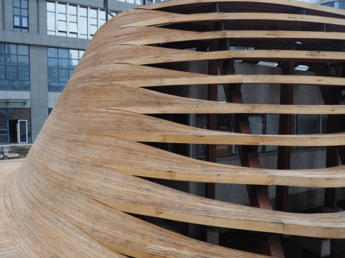 But besides Bamboo Square’s function as a spot for people to unwind, perform and share, it also has a symbolic meaning. The toughness, flexibility and natural origins of the bamboo material mimic the lives of many Chinese people: they grow up in the natural environment of the countryside, become educated and later come to the city to find a job. During this process they have to remain both tough and flexible, and adapt to their new environment, just like the bamboo in the square has been moved from its home in the mountains and shaped into a different form while maintaining its gentle, natural essence.