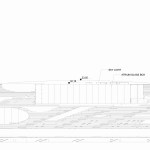 The volume consists of a curved roof that is well integrated in the sloping site; the landscape’s curved lines result in a pool that frames the outdoor exhibition space.