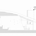 The solid roof (white concrete and white metal) ,filtrated by light , is only interrupted by a large glass atrium. The pedestrian ramp (4% slope for disabled access) wraps around the atrium and allows natural light into the lower level atrium.