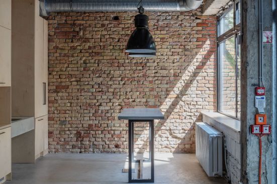 Based on the aspects of cyclical architecture and being environmentally friendly, the designers took a decision – which might be unusual still these days – not to cover nor to paint anything only because of aesthetics. This way the surfaces revealed during the demolition remained as they were: the concrete beams weren’t covered and the raw brick walls weren’t painted. This gesture besides protecting the environment lets us have a look into the building’s history. We can see the changes of the past 60 years, the work of precise and unprecise hands.