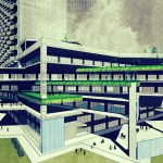 This project proposal was made as part of the Bandung City Government Redevelopment Program. We utilized innovative research and planning as we intend the design to increase the quality of traditional market spaces and push the boundaries of how people view them. The building consist of 380 affordable housing units, 12.000 sqm of retail area and local market, 2.100 sqm rooftop park. The layout is based on rotating an efficient square plan in order to create dynamic and interesting voids as well as public garden space. Meanwhile, efficiency in plan and structure is still maintained.
