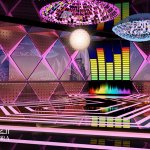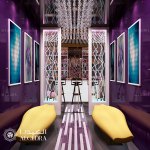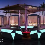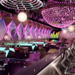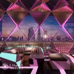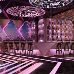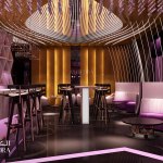 Contemporary style interior with a conceptual lighting design that creates nightlife ambiance inside and relaxing atmosphere outdoors.