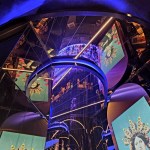 The bar was created to resemble a UFO, with LED lights that color-change the edges of the mirror glass to create an illusion of otherworldliness. Ranging from soft greens to blues, these dancing lights accent and reflect the mirror glass, making the space appear almost infinite, even intergalactic.