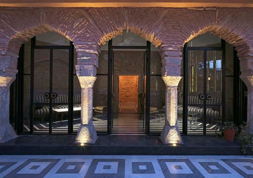 A key conceptual move was to use the courtyard as a binding element for the new spaces and program rather than just an extension of the restaurant. This meant dismantling an existing yet relatively new 20-year old structure, being used as a toilet block, from the middle of the courtyard. This opened up the area both visually and spatially. A Pavilion in the form of a Baradari (literally translated – pavilion with 12 columns) was inserted in the form of a bar into the courtyard to divide it yet connect the two zones flanking it. This contemporary expression of handcrafted marble and brass accentuates the textures and forms of the historic structures that surround it and gives the place its key identity. It also becomes a marker of today in the building’s timeline.