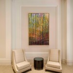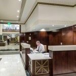 Windows were replaced with large insulated glazing panels with a low-e coating for greater energy efficiency. The “new” doors in the lobby were salvaged from storage and refinished to work with the palette of the new space. An existing metal grille pattern was recreated in wood to serve as larger return air grilles.