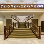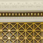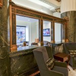 The project restored the existing 1” thick white marble floors and the green marble column bases, which had been severely altered during demolition of many of the original bank teller’s cages. A main stair – not original to the space – received new finishes and a new railing design which drew its inspiration from the jack-and-cross design of the second floor balustrade.