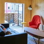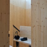 On entering it is apparent the exposed Cross Laminated Timber (CLT) acts as the superstructure for all walls, floors and the roof with visible construction joints expressing the method of assembly. Insulation with vapour barrier and protecting sheeting are applied to the outside face before a self-supporting brick rain-screen completes the exterior thermal and protective overcoat. Ceilings are also left exposed with the use of a fire retardant clear varnish and acoustic performance achieved using resilient boards, insulation and a floating timber floor above; these also accommodating the underflooor heating, power, data and hot/cold water services. The ability of the CLT to serve as structure and finish removed the need for plasterboarded walls, suspended ceilings, cornices, skirtings, tiling and paint; reducing by 15% the embodied carbon of the building, its construction cost and time on site. Timber also has inherently more robust and is perhaps a better and warmer domestic aesthetic. Window seats, timber cabinetry and full height doors some with leather handles, others with bespoke and articulated metal locks continue the sense of home.