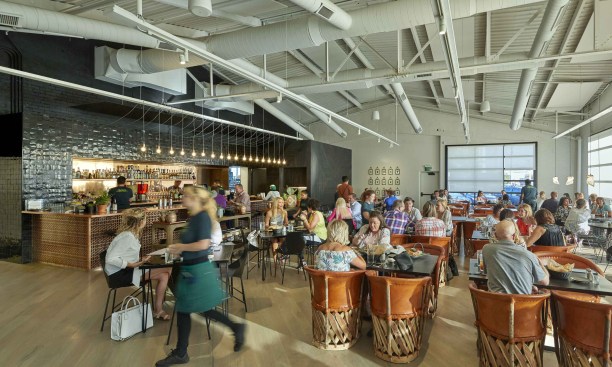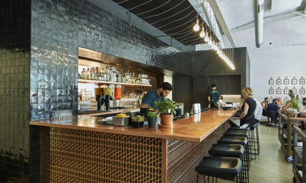 Set in a building continuously occupied for over 100 years, Barrios is an adaptive reuse interior renovation project, turning what once was a car mechanic space into a new-age Mexican restaurant. Design challenges included creating a patio that can be open 11 months out of the year, the constraints of renovating an urban site, and creating a unique environment that caters to an unexpected Mexican-food experience.