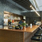 The Gardner team worked to incorporate unique, eye-catching elements into the overall environment while prioritizing warmth and natural light in the main dining area. The open area of the original garage now hosts ample seating and an expansive bar. Firewood storage becomes a visual art piece adjacent to the bar, while a mirrored backsplash and glazed handmade tiles highlight the colorful cocktails and food as it exits the kitchen. The entire atmosphere is vibrant and bustling, with a warm ambiance reflective of the food origins and people.