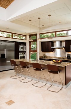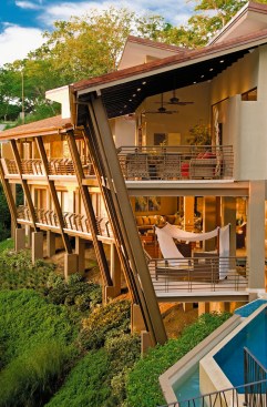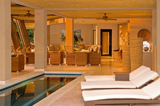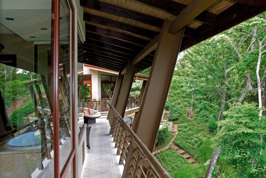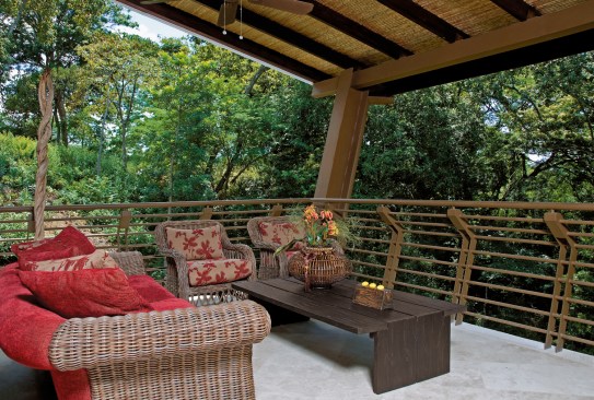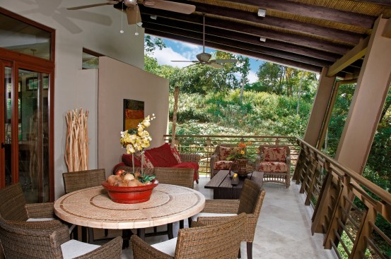 Upper level balconies allow for elevated views out to the jungle, and give the feeling of being right next to some of the tree canopies around. The expansive outdoor living space in the lower level is kept at a comfortable range all year round due to cross-ventilation and capturing of the upcoming ocean breezes.