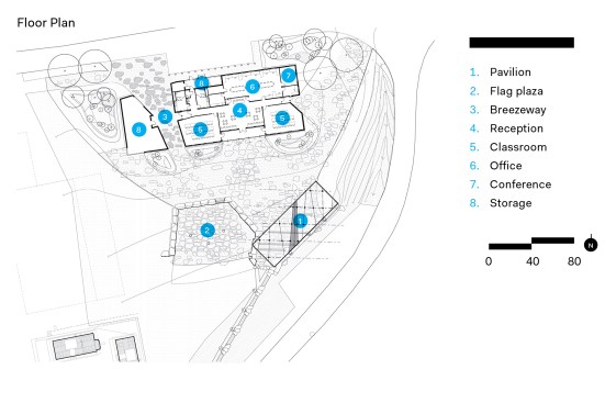 Size: 14,000 gross square feet (pavilion and headquarters)