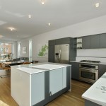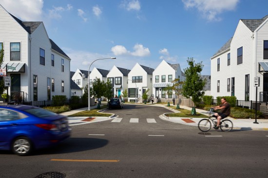 The team at local firm Pappageorge Haymes Partners designed the homes to enhance interactivity, create a sense of community, and promote pride of ownership. A tree-lined street and sidewalks curve through the site alongside a centrally located park, promoting a pedestrian-friendly experience. Exteriors utilize a sophisticated neutral color palette, lending a refined and crisp appearance. Individual lots feature landscaped yards, wide front porches, and two-car detached garages largely accessed via alleys. Each home takes cues from modern lifestyles with an open, loftlike first floor and ample natural light. Floor plans are offered in four- and five-bedroom layouts with 3.5 bathrooms and fully finished basements.