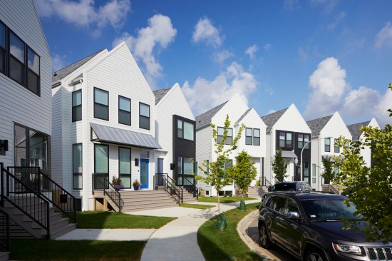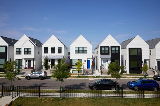 Located adjacent to Chicago’s historic Old Irving Park, this enclave of 48 modern homes created a new neighborhood within one of the city’s most treasured communities. Because the houses are geared toward young families and couples, the project team wanted to incorporate contemporary themes at an attainable price point while still respecting the area’s traditional architecture. To this end, the design of the individual homes reinterprets the traditional image of a house, with peaked roof forms and comfortably scaled windows taking cues from modern influences and detailing.
