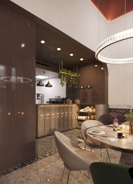A small family restaurant serving burgers and pizza, with an elegant, extremely sophisticated interior – this is how the desire of the customer from Saudi Arabia sounded. According to his plan, the main group of visitors of the institution is women and children. They should feel cozy and comfortable, tasting simple and clear dishes, but in a secular atmosphere, not devoid of gloss and charm. The idea resulted in a seemingly unusual for this kind of cuisine, modern, stylish and European elegant interior with motifs of the Arab world aesthetics. Thus, the owners of the restaurant were able to stand out among competitors and increase the average check due to their uniqueness in a homogeneous environment.