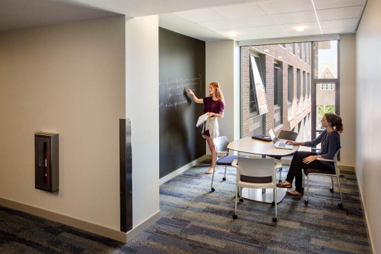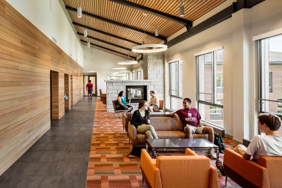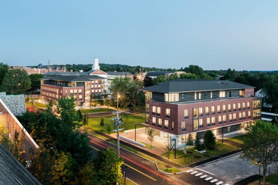 Student life at Bates College centers on a rich residential and campus culture. ABA completed a campus plan, exploring the revitalization of underutilized campus buildings, investment in the surrounding neighborhood, integration of campus programs with new student housing, campus landscape initiatives, and development of a multi-phase plan for implementation. As the first phase of the Master Plan, ABA’s design for the new Student Residences and Campus Life Center at Bates College creates a new campus gateway and student community on the College’s main Campus Avenue. The new mixed-use complex houses over 240 students and a retail commons with the campus bookstore and Post & Print, creating a new anchor facility for the College, visitors, and the community. The facilities provide year-round accommodations and programming, hosting research conferences and residents during summer months. Mixing the residences with the College Store and Post & Print services creates a cornerstone and gateway to Bates College.