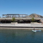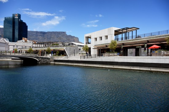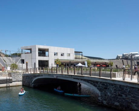 The lower piazza level contains 11 boutique retail units that line the splayed canal-facing walls and form an active eastern edge to the new canal pedestrian route. The intention behind the piazza was to activate the canal via a range of water sports and provide a link between the V&A and the CBD – encouraging a pedestrianised environment. Referencing the battery’s original façade, loosely packed stone-filled gabion walls shroud the parking facility and stone-clad planters contain fynbos and waterwise plants. All stone used throughout the park and piazza was excavated from the site during the construction process. These antiquated elements juxtapose contemporary insertions that reference the battery rather than replicate its heritage.