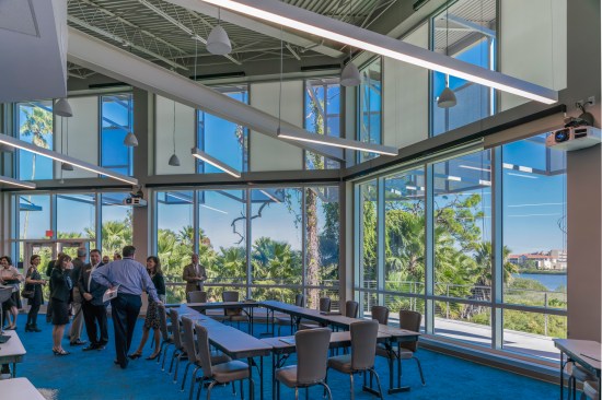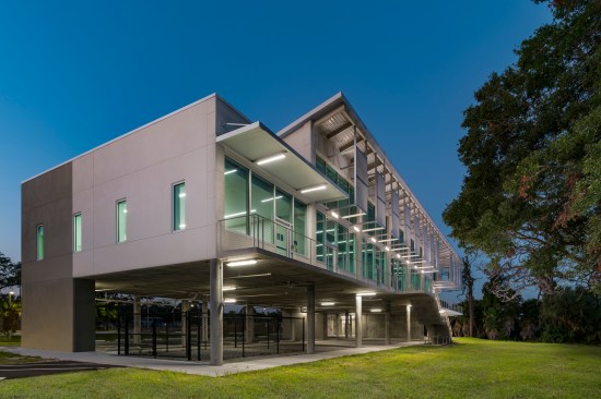 The facility will be the sole building at the site, serving as a beacon for the College and highlighting the programs housed there. Supporting this goal, the building is a signature iconic design that embodies the coastal environs of the property and is the catalyst for the research conducted there.