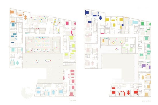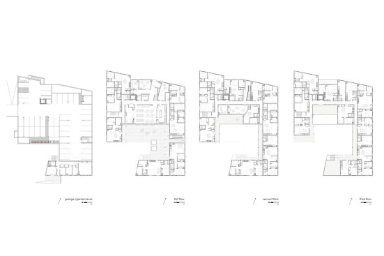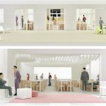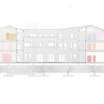 French 2D’s innovative design for Bay State Commons Cohousing collapses a collective building of 30 dwellings for 100 inhabitants so that it simultaneously reads as a single house and a happy hamlet. Following the cohousing ethos, each of the 30 units provide the amenities of a private home, while also creating a community around shared spaces and resources. The urban site for this community takes principles of smaller living at all unit sizes—micro-studio through three-bedroom—to free up space and resources for the benefit of the larger group. Formal slices throughout the site and building provide accessible routes and common spaces through layers of interior and exterior spaces. “We are excited to be part of new housing and development models, imported from places like Denmark, and the Baugruppen movement in Germany, that address the formation of non-traditional households, social isolation, and aging here in Boston,” says co-principal Jenny French.